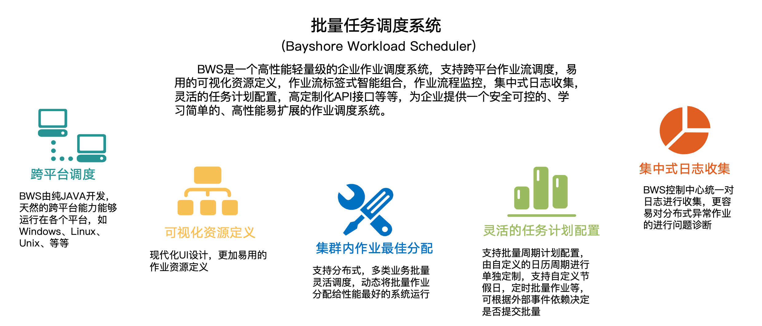 统一批量调度系统将作为集中批量处理平台,进行业务批量调度工作,整合各个业务系统的批量,进行集中管理。有助于客户对整体批量的整体掌控,对批量进行优化以及增强各个团队之间的协作。统一批量调度系统将提供统一的批量作业编排、批量调度、批量作业的运行分析、关键路径以及监控等功能,在后期的批量问题定位、业务影响以及缩短批量时间等方面提供很大的帮助,在后期的运维过程中也将大大减少对人工的依赖,降低运维成本。