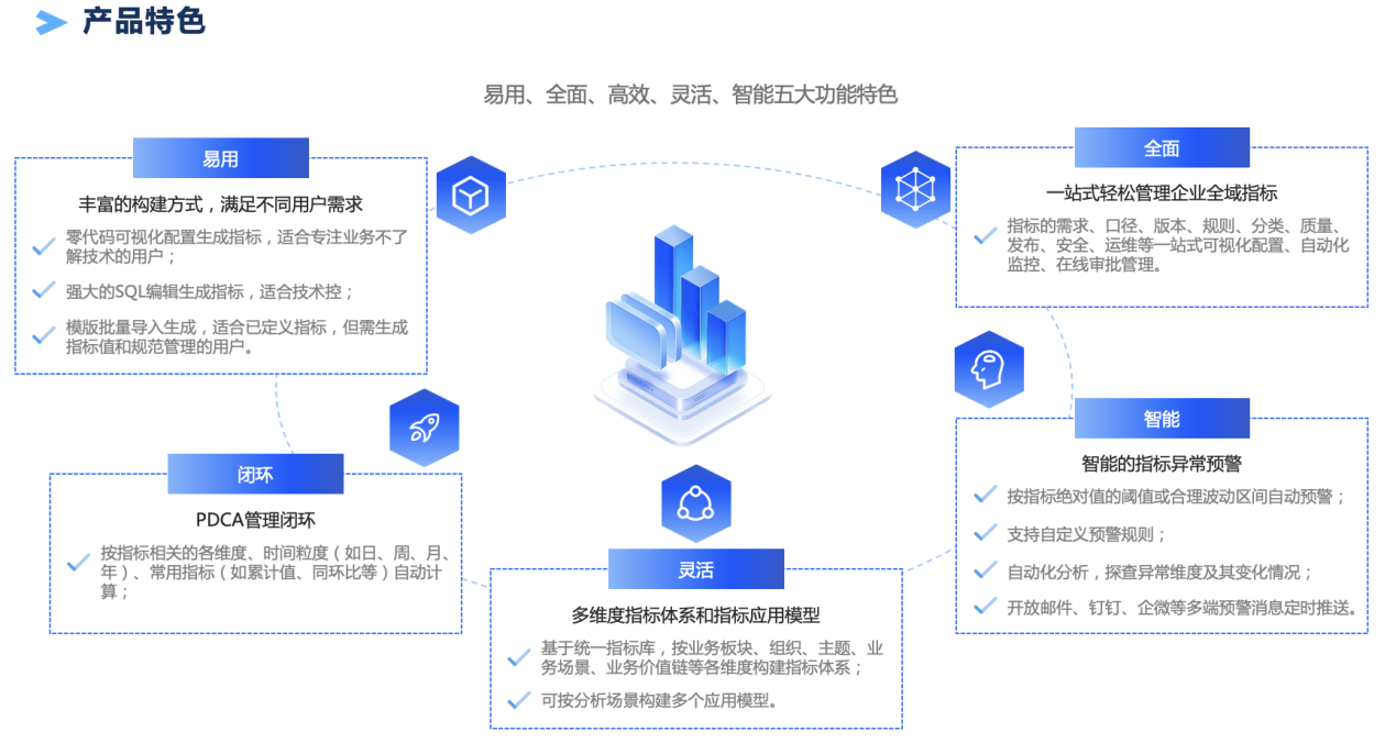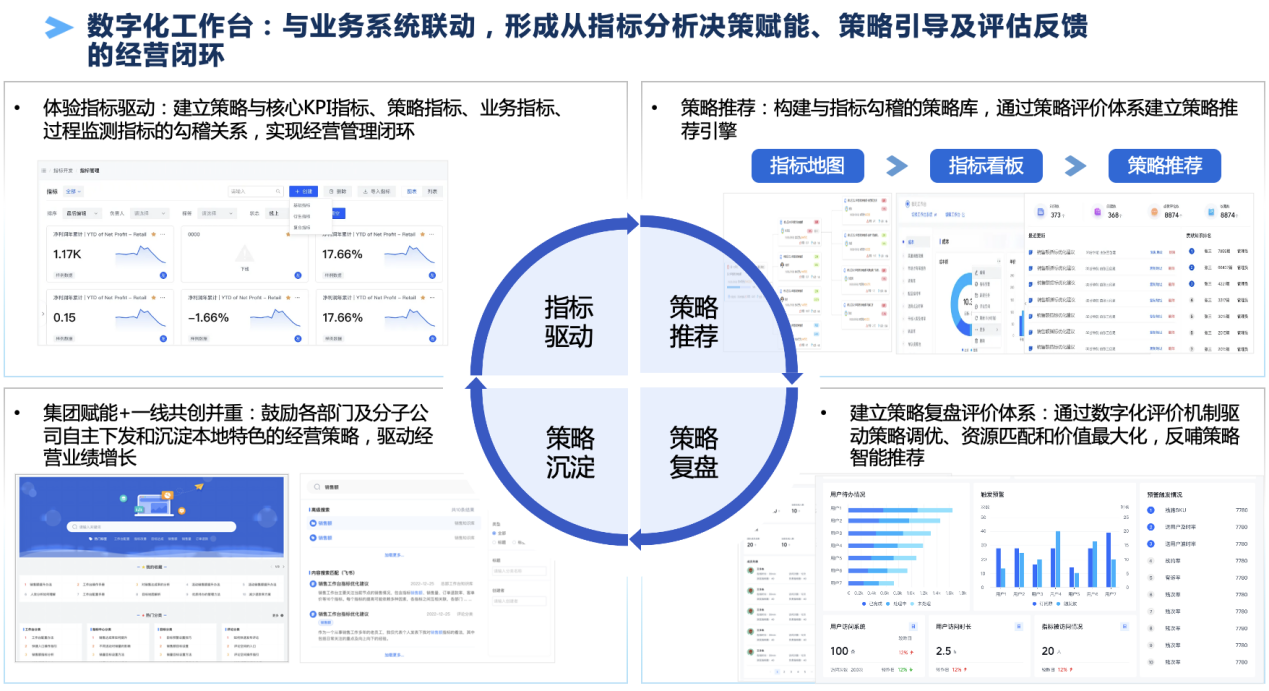 数字化工作台以指标管理为核心,基于OKR和PDCA理念,通过指标看板、问题定位、原因分析、闭环过程监控、策略执行等能力,帮助企业发现企业管理问题,优化资源配置,实现企业经营从事前、事中到事后的经营闭环,实现降本增效的目标